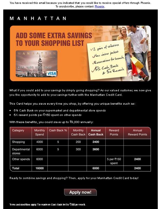 [BreakingNewsAlerts] Get cash back at your supermarket and departmental store only on your Manhattan card